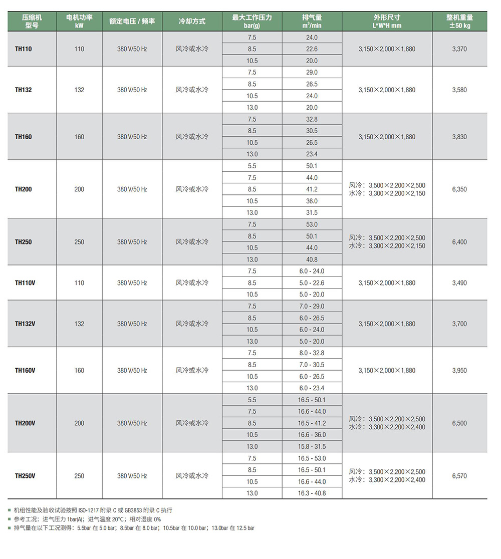 高效双级压缩固定式喷油螺杆空气压缩机寿力TH110~250